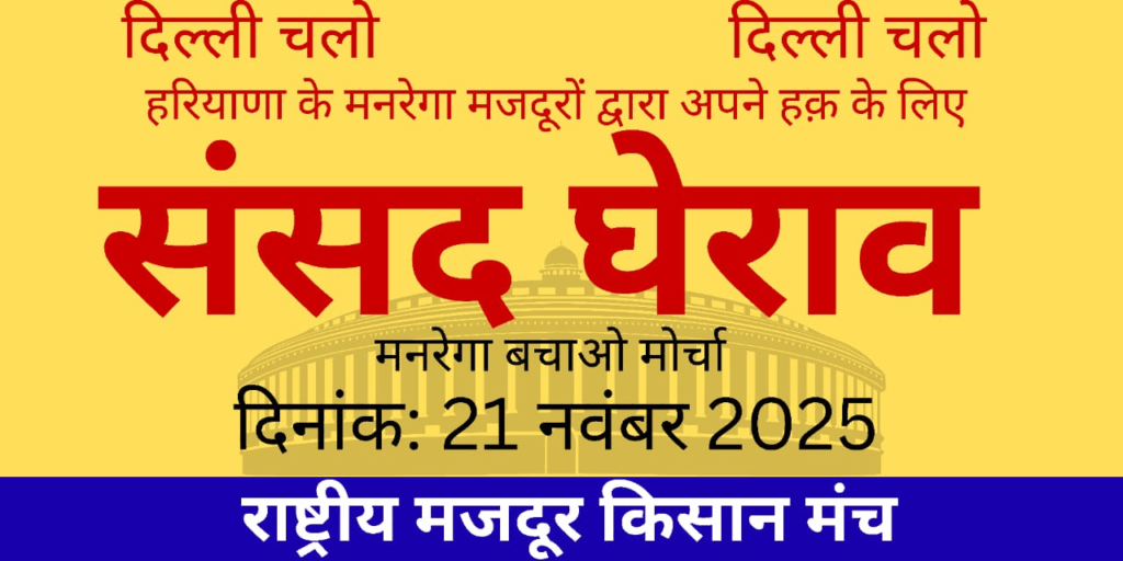 मनरेगा मजदूरों के अधिकारों की रक्षा और सरकार की मजदूर विरोधी नीतियों के खिलाफ 21 नवम्बर 2025 को दिल्ली में बड़ा आंदोलन होने जा रहा है. “मनरेगा बचाओ अभियान” के तहत देशभर से मनरेगा मजदूर संसद घेराव करेंगे. हरियाणा से भी बड़ी संख्या में मजदूरों की भागीदारी रहने वाली है.