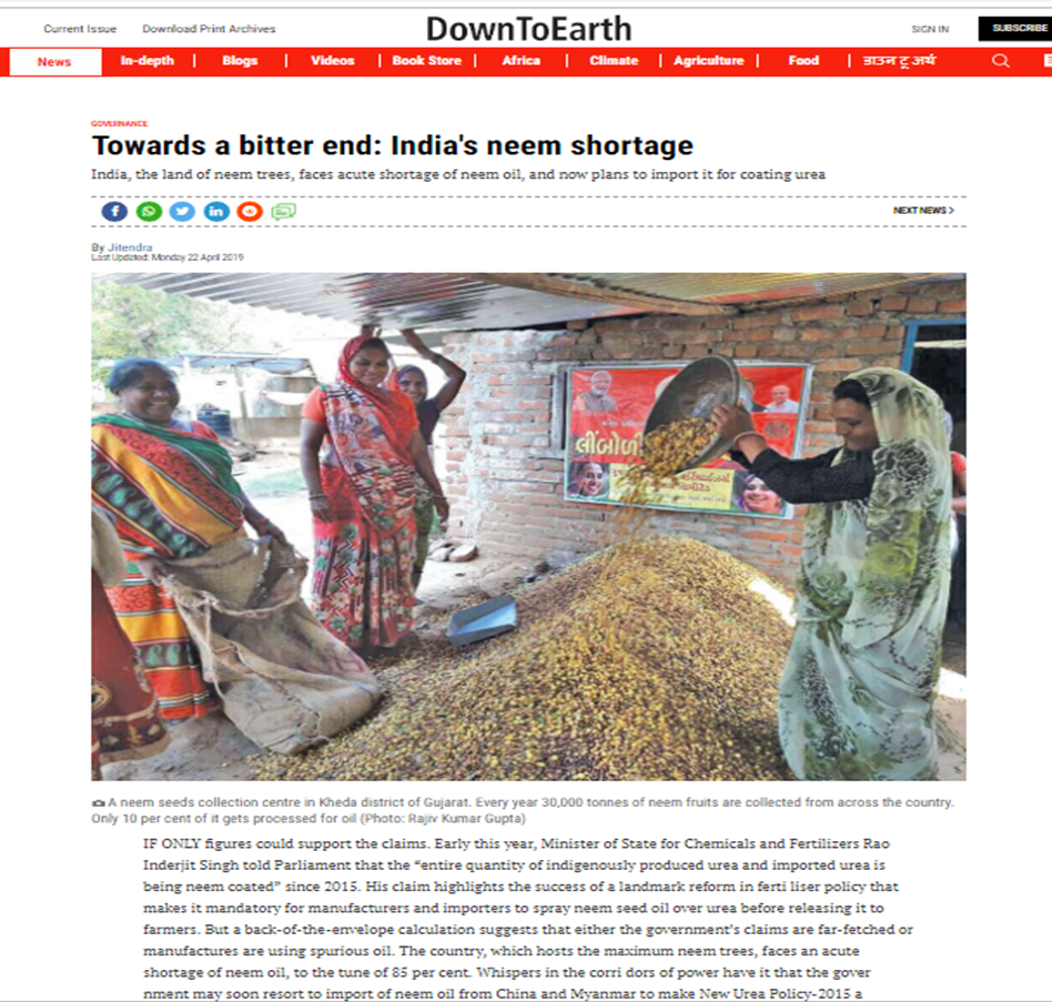 Previous Image Next Image Picture1 https://www.downtoearth.org.in/news/governance/towards-a-bitter-end-india-s-neem-shortage-63978 https://www.downtoearth.org.in/news/governance/towards-a-bitter-end-india-s-neem-shortage-63978